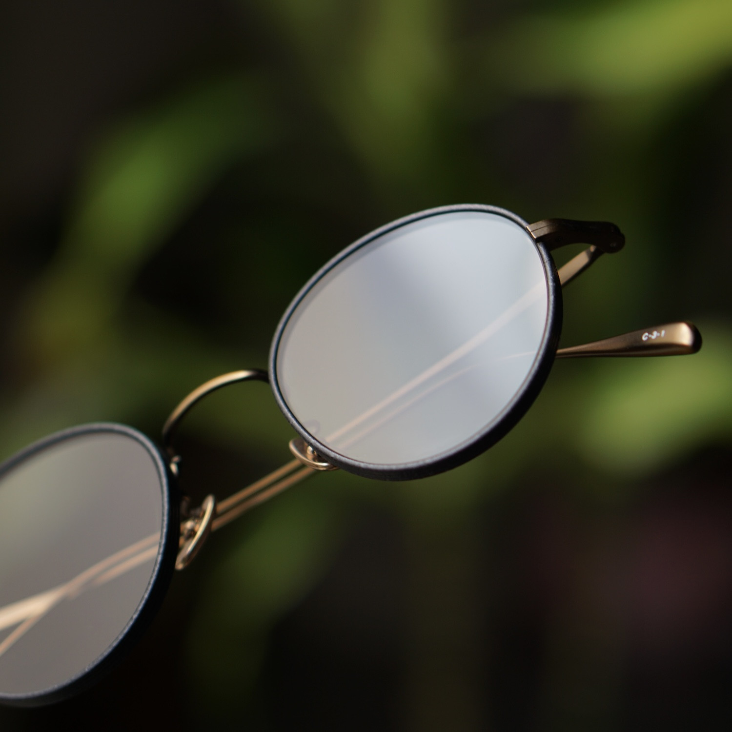 ブリッジやテンプルは、レザータイプ塗装と相性の良いアンティークゴールドを採用。