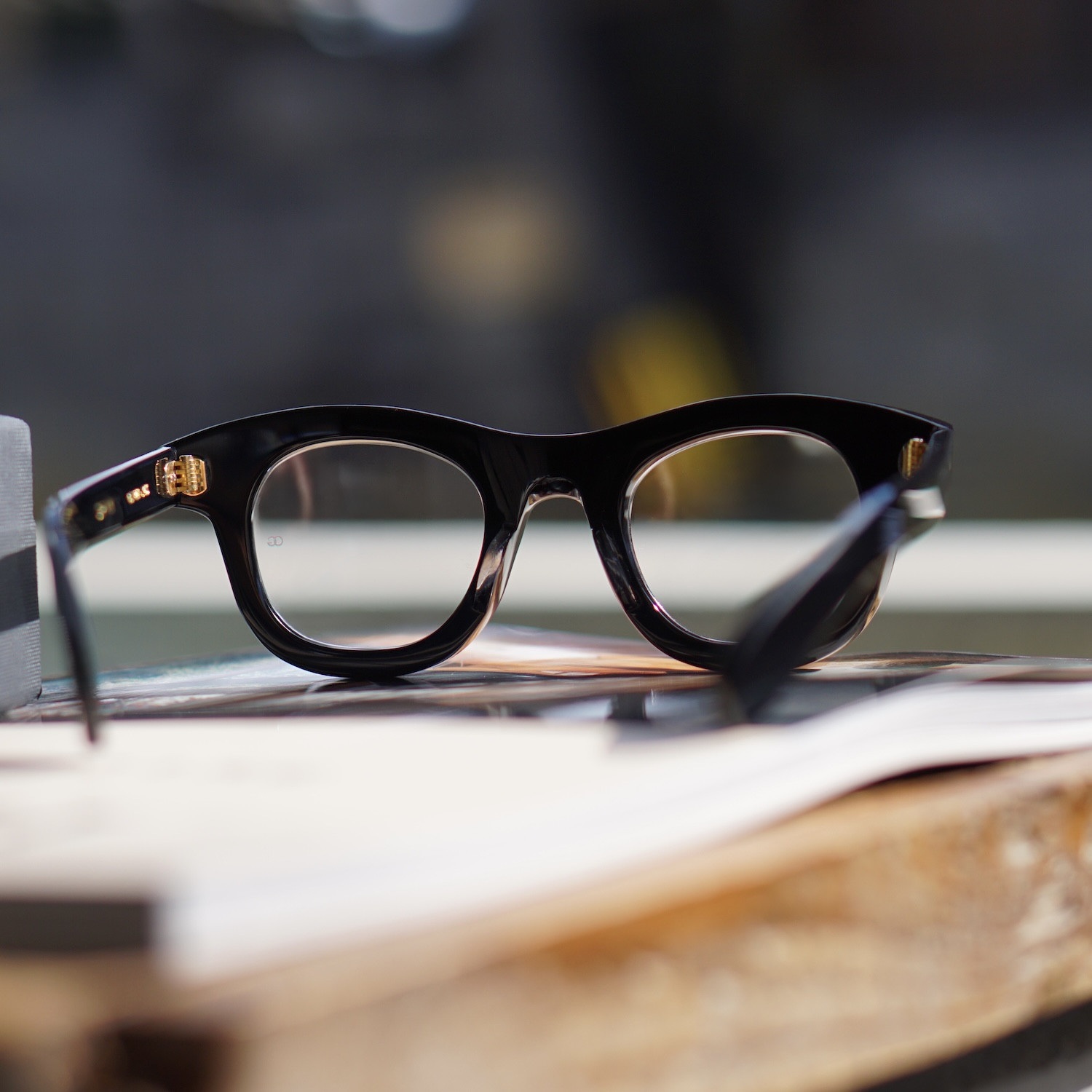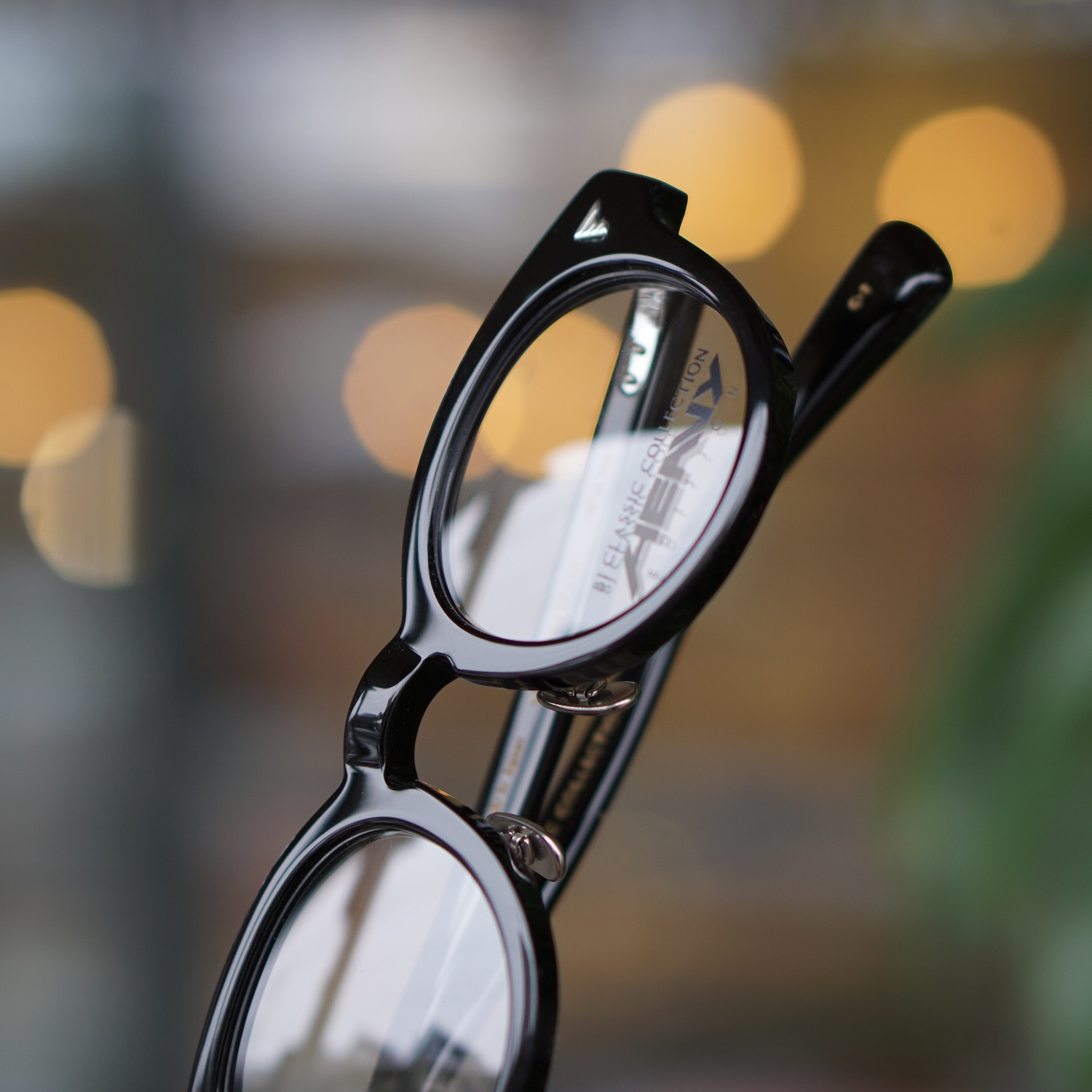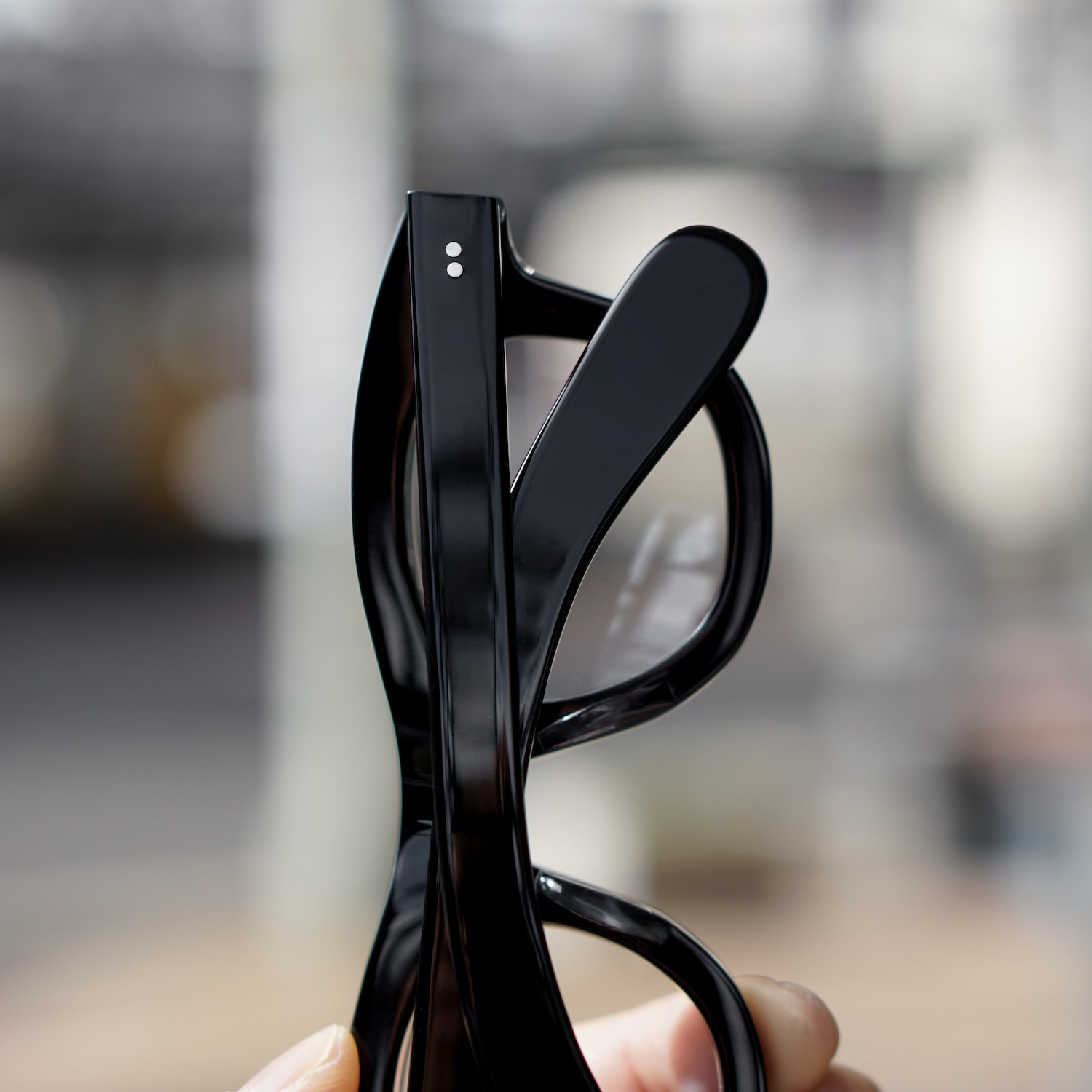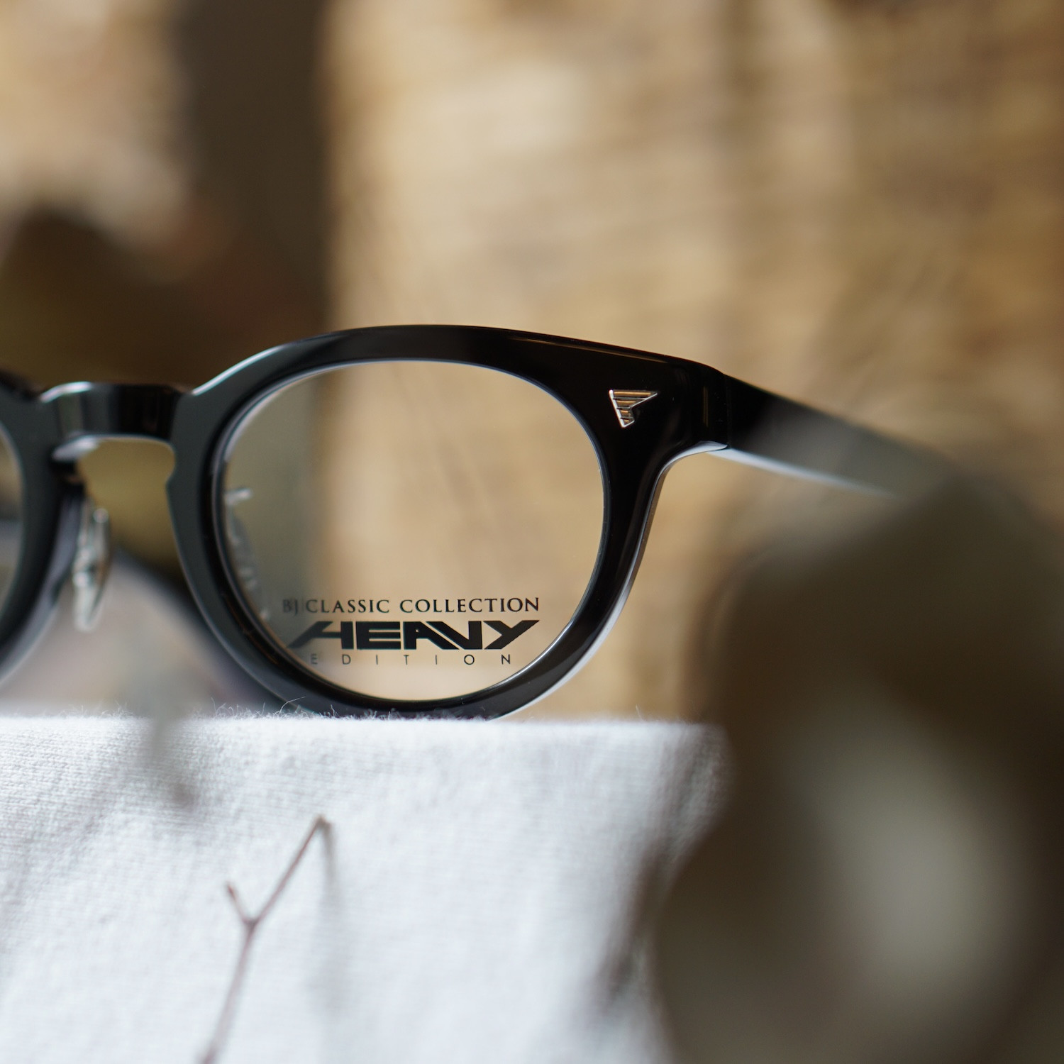 テンプル芯にこだわったシリーズで、着用すると太くデザイン性のあるテンプルが顕になります。