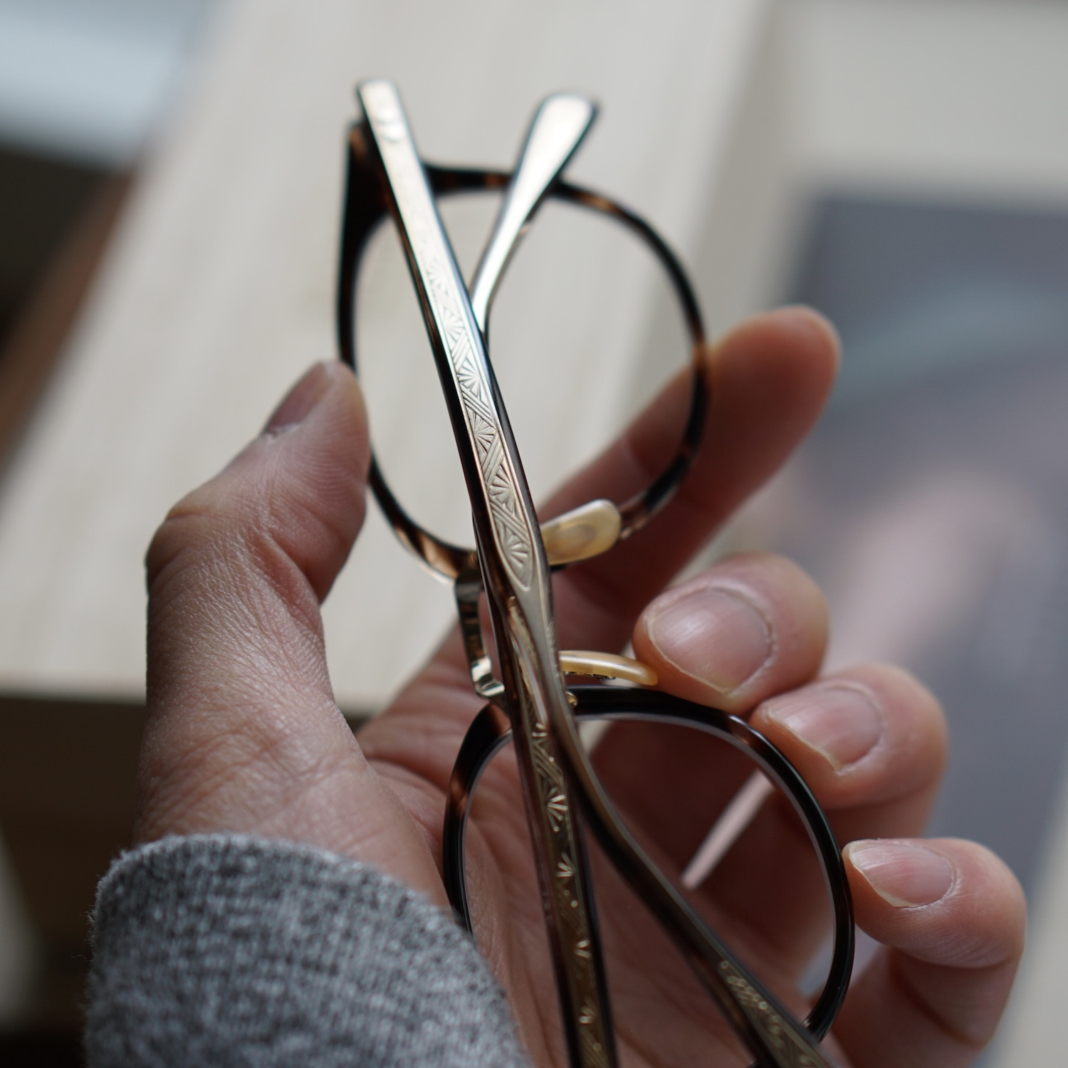 元々C-2(Tortoise)を候補にしていたようですが、ご試着いただいたところC-10(Geo Amber)を気に入っていただきました。