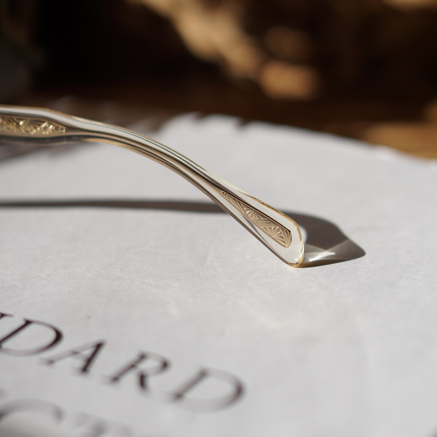 生地から透けて見えるゴールドの美しい芯張りが、黄色みがかったクリアカラーと相性抜群。